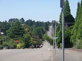 | 谷底はシーニックウォークウェイという散策路。いくつかのコースがある(車いす用のコースもある)のですが、せっかくなので2.4km、フルで廻って見ることに。 | ユーカリの原生林(Rainforestと書いてました)をのんびりとお散歩。ユーカリは揮発分を大量に出すらしく、短時間の割には森林浴を満喫した気分になりました。 | 帰りはシーニックケーブルウェイで一気に崖上まで。この角度を一気に降りてきたシーニックレールウェイはやはりタダものではない…。すっかり楽しめました。 |